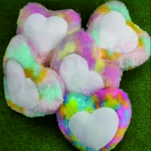 Personalised Heart Fur Cushion Rainbow